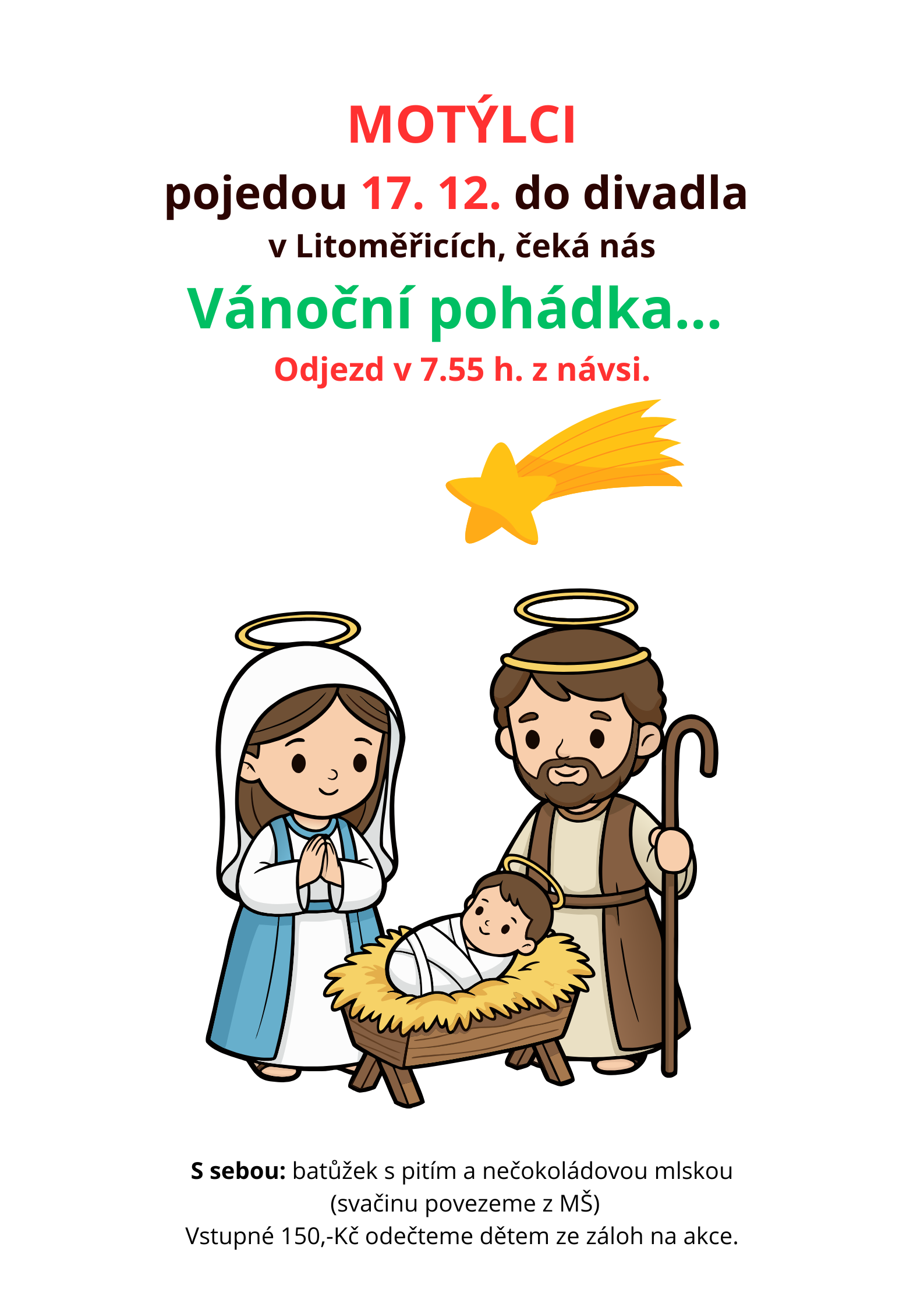 Děti ze třídy Motýlků navštíví 17. 12. 2025 (středa) Divadlo K. H. Máchy v Litoměřicích.
